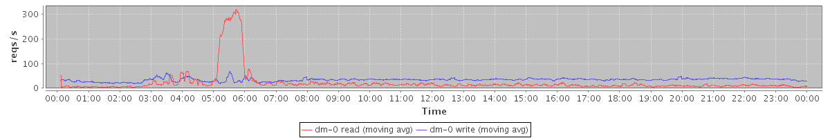 avg(dm-1 read) = 24.76 avg(dm-1 write) = 1.82
