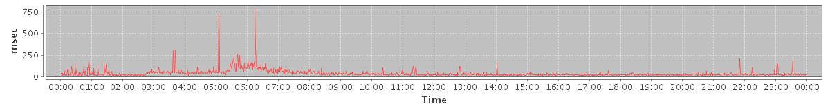 avg(SendMsgRequest) = 235.80 avg(BackupQueryRequest) = 238.20 avg(GetInfoRequest) = 161.98 avg(SendInviteReplyRequest) = 280.75 avg(AutoCompleteRequest) = 372.84 avg(RemoveAttachmentsRequest) = 167.50 avg(ApplyFilterRulesRequest) = 1701.00 avg(FolderActionRequest.empty) = 326.89 avg(BackupRequest) = 4102.50 avg(GetQuotaUsageRequest) = 3438.00