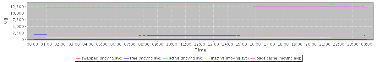avg(swapped) = 0.16 avg(free) = 1548.19 avg(active) = 12989.94 avg(inactive) = 764.40 avg(page cache) = 12317.84