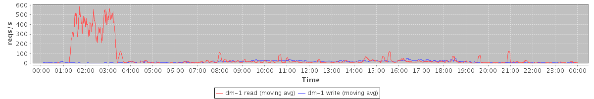 avg(dm-1 read) = 888.72 avg(dm-1 write) = 234.95