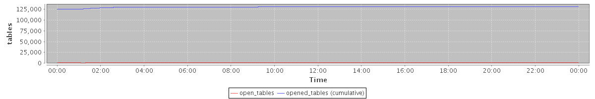 avg(open_tables) = 1192.16 avg(opened_tables (cumulative)) = 130025.18