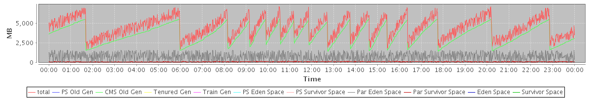 avg(total) = 4490.48 avg(PS Old Gen) = 0.00 avg(CMS Old Gen) = 3574.29 avg(Tenured Gen) = 0.00 avg(Train Gen) = 0.00 avg(PS Eden Space) = 0.00 avg(PS Survivor Space) = 0.00 avg(Par Eden Space) = 798.45 avg(Par Survivor Space) = 117.74 avg(Eden Space) = 0.00 avg(Survivor Space) = 0.00
