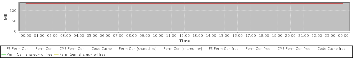avg(PS Perm Gen) = 0.00 avg(Perm Gen) = 0.00 avg(CMS Perm Gen) = 62.86 avg(Code Cache) = 11.64 avg(Perm Gen [shared-ro]) = 0.00 avg(Perm Gen [shared-rw]) = 0.00 avg(PS Perm Gen free) = 0.00 avg(Perm Gen free) = 0.00 avg(CMS Perm Gen free) = 133.14 avg(Code Cache free) = 0.17 avg(Perm Gen [shared-ro] free) = 0.00 avg(Perm Gen [shared-rw] free) = 0.00