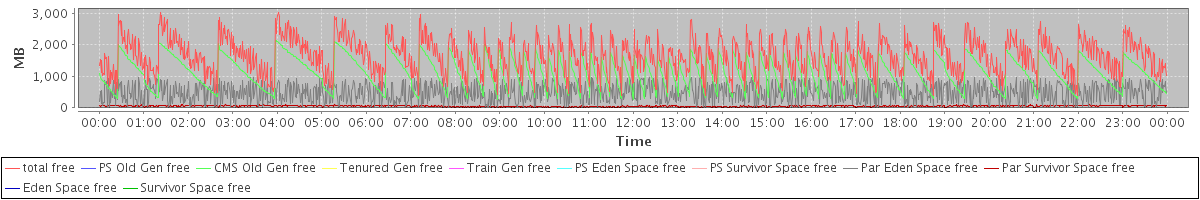 avg(total free) = 1649.32 avg(PS Old Gen free) = 0.00 avg(CMS Old Gen free) = 1111.39 avg(Tenured Gen free) = 0.00 avg(Train Gen free) = 0.00 avg(PS Eden Space free) = 0.00 avg(PS Survivor Space free) = 0.00 avg(Par Eden Space free) = 484.57 avg(Par Survivor Space free) = 53.35 avg(Eden Space free) = 0.00 avg(Survivor Space free) = 0.00