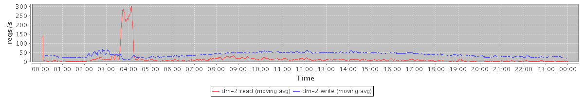 avg(dm-2 read) = 17.07 avg(dm-2 write) = 38.97