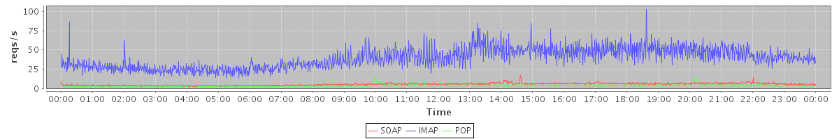 Host zm05.stanford.edu: Mailboxd: Request Rate by Client Protocol
