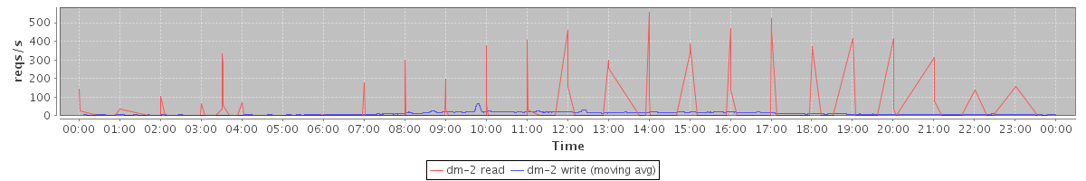 avg(dm-0 read) = 279.19 avg(dm-0 write) = 838.80