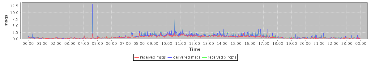 avg(received msgs) = 0.67 avg(delivered msgs) = 0.84 avg(received x rcpts) = 0.88