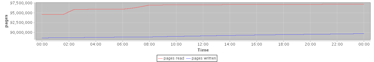avg(pages read) = 96648983.21 avg(pages written) = 89119115.25