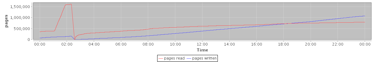 avg(pages read) = 613767.29 avg(pages written) = 441400.45