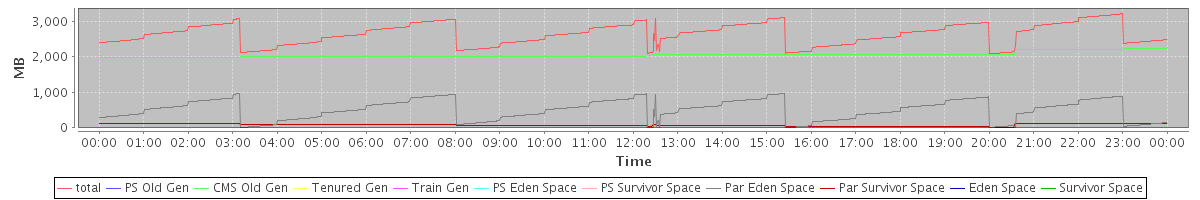avg(total) = 2635.97 avg(PS Old Gen) = 0.00 avg(CMS Old Gen) = 2055.40 avg(Tenured Gen) = 0.00 avg(Train Gen) = 0.00 avg(PS Eden Space) = 0.00 avg(PS Survivor Space) = 0.00 avg(Par Eden Space) = 500.08 avg(Par Survivor Space) = 80.49 avg(Eden Space) = 0.00 avg(Survivor Space) = 0.00