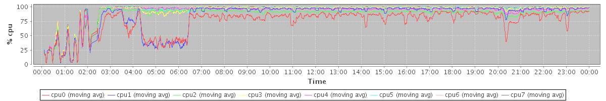 avg(cpu0) = 75.09 avg(cpu1) = 84.31 avg(cpu2) = 86.57 avg(cpu3) = 92.25 avg(cpu4) = 90.76 avg(cpu5) = 93.00 avg(cpu6) = 91.29 avg(cpu7) = 93.25