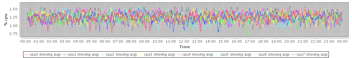avg(cpu0) = 1.24 avg(cpu1) = 1.23 avg(cpu2) = 1.23 avg(cpu3) = 1.26 avg(cpu4) = 1.28 avg(cpu5) = 1.26 avg(cpu6) = 1.28 avg(cpu7) = 1.29