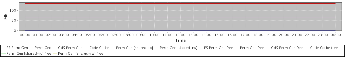 avg(PS Perm Gen) = 0.00 avg(Perm Gen) = 0.00 avg(CMS Perm Gen) = 63.31 avg(Code Cache) = 13.97 avg(Perm Gen [shared-ro]) = 0.00 avg(Perm Gen [shared-rw]) = 0.00 avg(PS Perm Gen free) = 0.00 avg(Perm Gen free) = 0.00 avg(CMS Perm Gen free) = 132.69 avg(Code Cache free) = 0.22 avg(Perm Gen [shared-ro] free) = 0.00 avg(Perm Gen [shared-rw] free) = 0.00