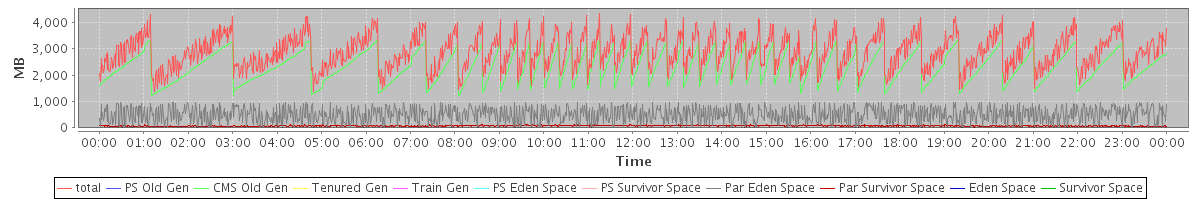 avg(total) = 2884.95 avg(PS Old Gen) = 0.00 avg(CMS Old Gen) = 2314.77 avg(Tenured Gen) = 0.00 avg(Train Gen) = 0.00 avg(PS Eden Space) = 0.00 avg(PS Survivor Space) = 0.00 avg(Par Eden Space) = 497.05 avg(Par Survivor Space) = 73.13 avg(Eden Space) = 0.00 avg(Survivor Space) = 0.00
