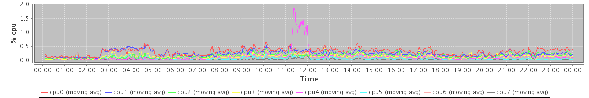 avg(cpu0) = 0.29 avg(cpu1) = 0.23 avg(cpu2) = 0.16 avg(cpu3) = 0.13 avg(cpu4) = 0.13 avg(cpu5) = 0.05 avg(cpu6) = 0.12 avg(cpu7) = 0.02