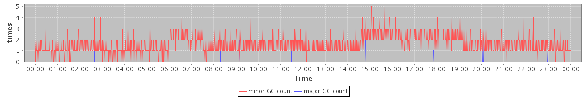 avg(minor GC count) = 1.65 avg(major GC count) = 0.01