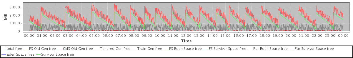 avg(total free) = 1847.47 avg(PS Old Gen free) = 0.00 avg(CMS Old Gen free) = 1309.81 avg(Tenured Gen free) = 0.00 avg(Train Gen free) = 0.00 avg(PS Eden Space free) = 0.00 avg(PS Survivor Space free) = 0.00 avg(Par Eden Space free) = 479.12 avg(Par Survivor Space free) = 58.55 avg(Eden Space free) = 0.00 avg(Survivor Space free) = 0.00