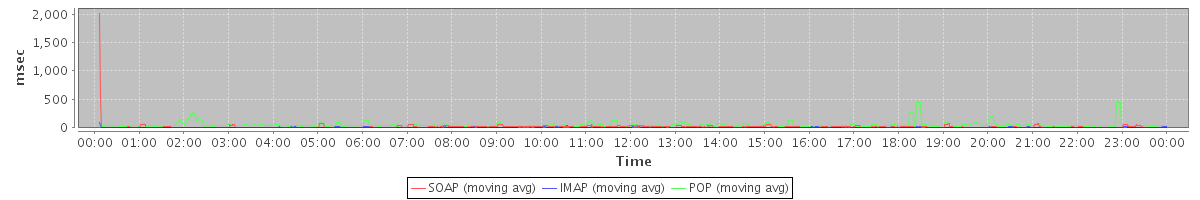 Host zm04.stanford.edu: Mailboxd: Response Time by Client Protocol