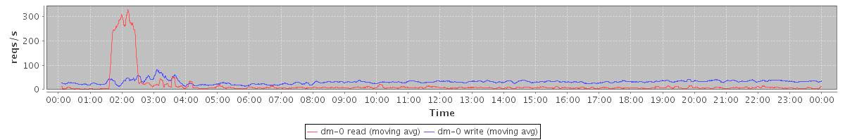 avg(dm-1 read) = 989.02 avg(dm-1 write) = 328.16
