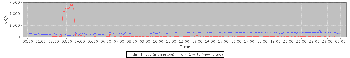 avg(dm-1 read) = 377.24 avg(dm-1 write) = 821.90