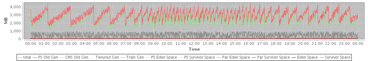 avg(total) = 2980.95 avg(PS Old Gen) = 0.00 avg(CMS Old Gen) = 2399.32 avg(Tenured Gen) = 0.00 avg(Train Gen) = 0.00 avg(PS Eden Space) = 0.00 avg(PS Survivor Space) = 0.00 avg(Par Eden Space) = 507.97 avg(Par Survivor Space) = 73.65 avg(Eden Space) = 0.00 avg(Survivor Space) = 0.00