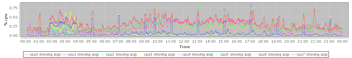 avg(cpu0) = 0.33 avg(cpu1) = 0.08 avg(cpu2) = 0.23 avg(cpu3) = 0.07 avg(cpu4) = 0.24 avg(cpu5) = 0.03 avg(cpu6) = 0.15 avg(cpu7) = 0.02