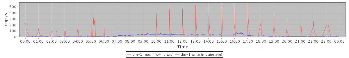 avg(dm-0 read) = 586.15 avg(dm-0 write) = 1207.88