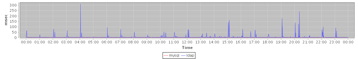 avg(mysql) = 0.18 avg(ldap) = 5.37