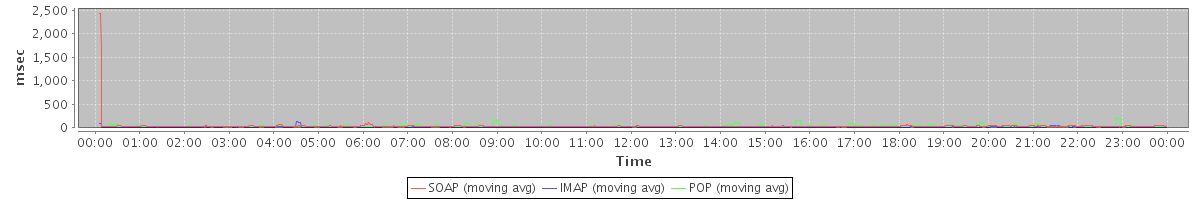avg(IMAP) = 23.95 avg(IMAP SSL) = 1256.60 avg(POP) = 0.02 avg(POP SSL) = 2.47
