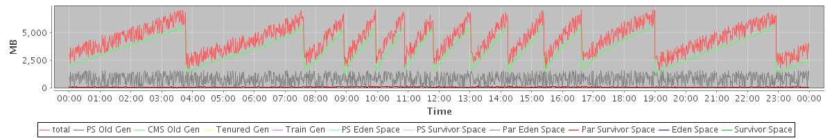 avg(total) = 4432.42 avg(PS Old Gen) = 0.00 avg(CMS Old Gen) = 3500.25 avg(Tenured Gen) = 0.00 avg(Train Gen) = 0.00 avg(PS Eden Space) = 0.00 avg(PS Survivor Space) = 0.00 avg(Par Eden Space) = 838.41 avg(Par Survivor Space) = 93.76 avg(Eden Space) = 0.00 avg(Survivor Space) = 0.00