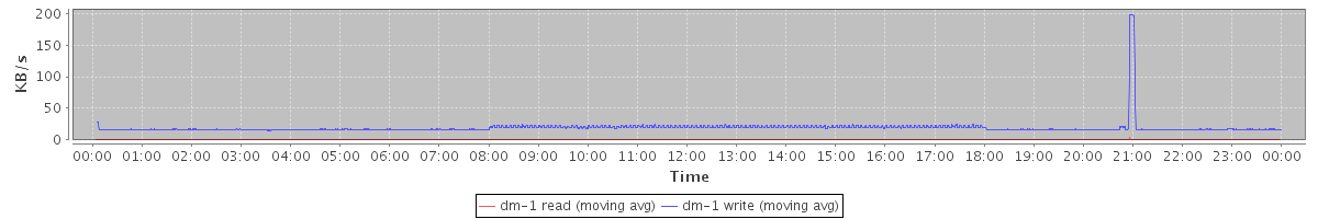 avg(dm-1 read) = 0.02 avg(dm-1 write) = 19.19