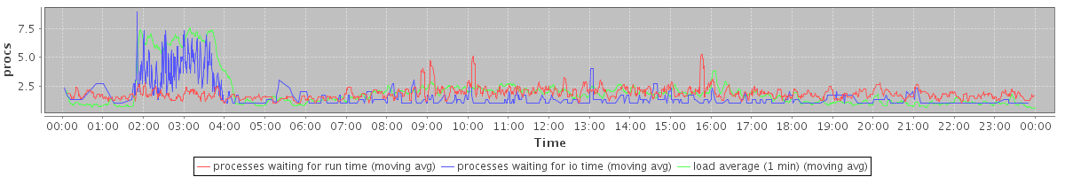 avg(processes waiting for run time) = 1.12 avg(processes waiting for io time) = 0.60 avg(load average (1 min)) = 1.98