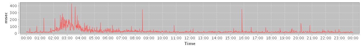 avg(SendInviteReplyRequest) = 266.00 avg(AutoCompleteRequest) = 440.25 avg(SendMsgRequest) = 198.30 avg(DeleteAccountRequest) = 27587.00 avg(SearchGalRequest) = 193.62 avg(BackupQueryRequest) = 436.80 avg(FolderActionRequest.empty) = 283.00 avg(BackupRequest) = 8087.00 avg(SearchCalendarResourcesRequest) = 187.00 avg(GetQuotaUsageRequest) = 2385.00