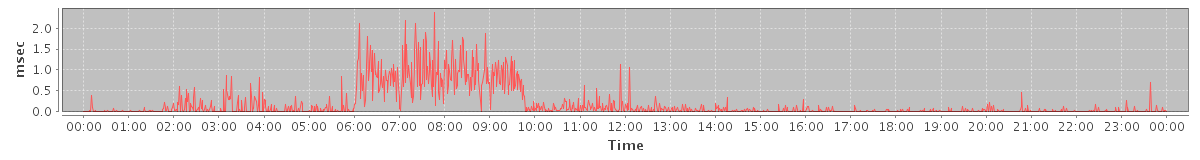 avg(SendMsgRequest) = 186.17 avg(BackupQueryRequest) = 184.20 avg(CancelAppointmentRequest) = 123.25 avg(RemoveAttachmentsRequest) = 289.00 avg(AutoCompleteRequest) = 274.98 avg(SetAppointmentRequest) = 173.11 avg(ConvActionRequest.delete) = 117.81 avg(SyncGalAccountRequest) = 40211.25 avg(BackupRequest) = 682.50 avg(GetQuotaUsageRequest) = 1619.00