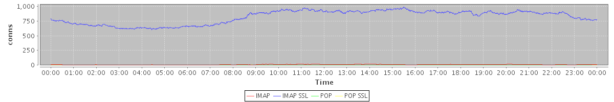 Host zm04.stanford.edu: Mailboxd: Active Connections by Client Protocol