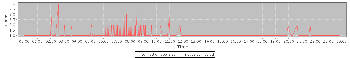 avg(connection pool size) = 0.34 avg(threads connected) = 0.00
