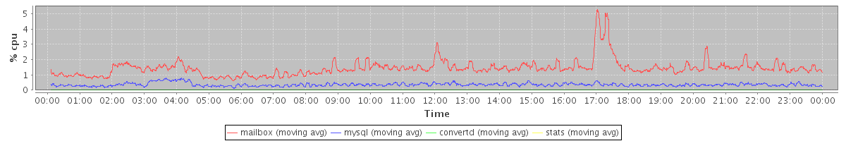 avg(mailbox) = 1.43 avg(mysql) = 0.36 avg(convertd) = 0.00 avg(stats) = 0.00