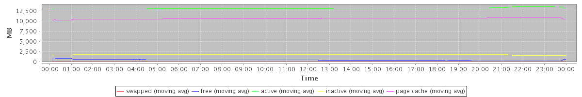 avg(swapped) = 0.22 avg(free) = 464.24 avg(active) = 13217.45 avg(inactive) = 1805.94 avg(page cache) = 10679.88