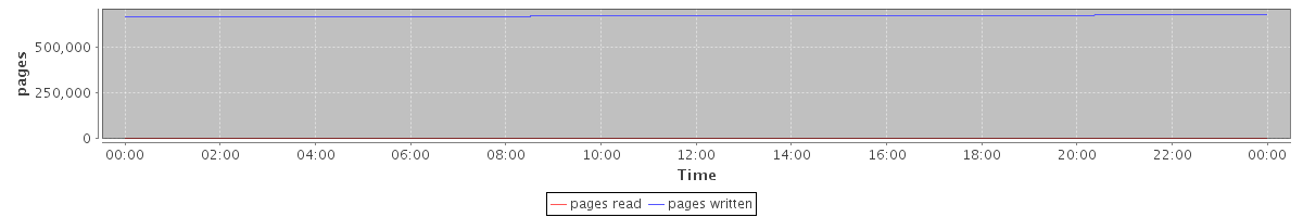 avg(pages read) = 744.00 avg(pages written) = 673833.40
