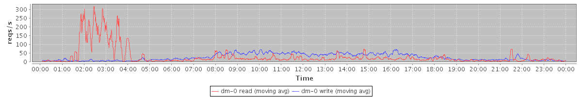 avg(dm-1 read) = 471.61 avg(dm-1 write) = 1185.54