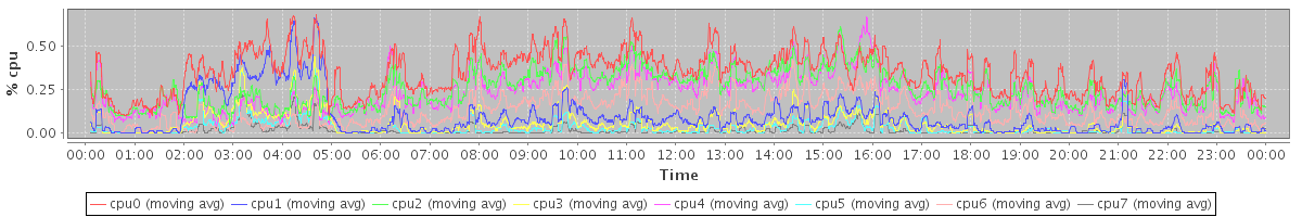 avg(cpu0) = 0.35 avg(cpu1) = 0.09 avg(cpu2) = 0.26 avg(cpu3) = 0.05 avg(cpu4) = 0.23 avg(cpu5) = 0.03 avg(cpu6) = 0.13 avg(cpu7) = 0.01