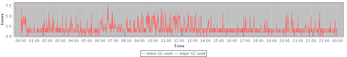 avg(minor GC count) = 1.83 avg(major GC count) = 0.00