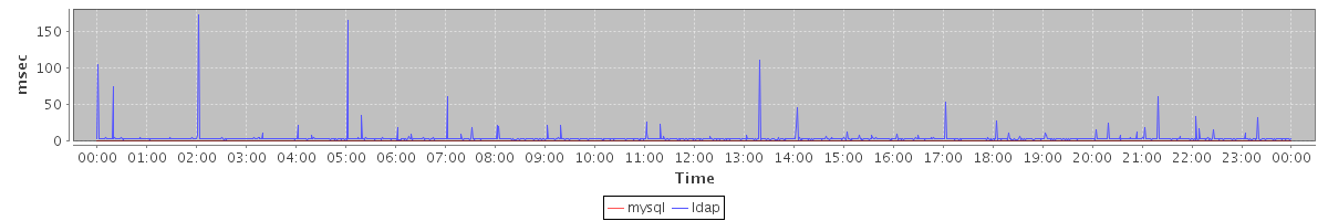 avg(mysql) = 0.23 avg(ldap) = 4.02