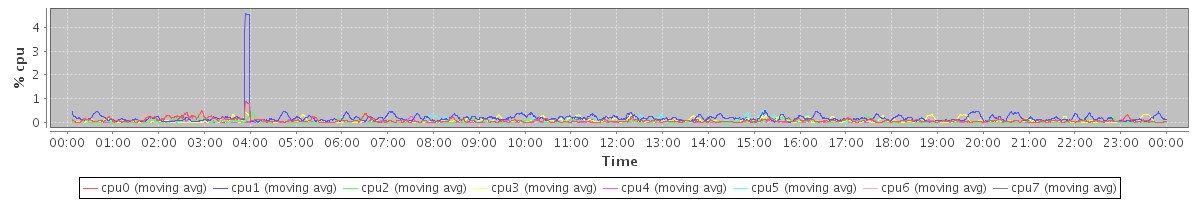 avg(cpu0) = 0.07 avg(cpu1) = 0.19 avg(cpu2) = 0.04 avg(cpu3) = 0.06 avg(cpu4) = 0.02 avg(cpu5) = 0.04 avg(cpu6) = 0.02 avg(cpu7) = 0.03