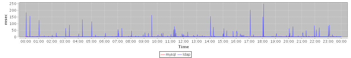 avg(mysql) = 0.24 avg(ldap) = 5.94