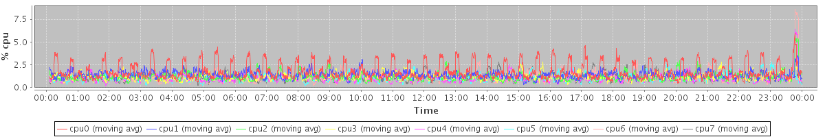 avg(cpu0) = 1.79 avg(cpu1) = 1.40 avg(cpu2) = 1.19 avg(cpu3) = 1.19 avg(cpu4) = 1.06 avg(cpu5) = 1.11 avg(cpu6) = 1.16 avg(cpu7) = 1.12