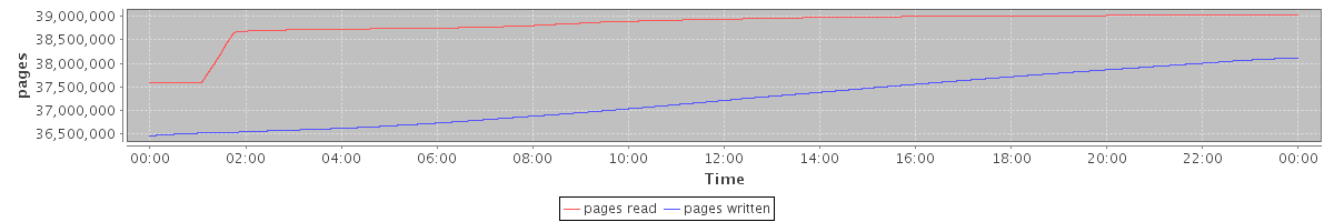 avg(pages read) = 38822918.60 avg(pages written) = 37240298.17