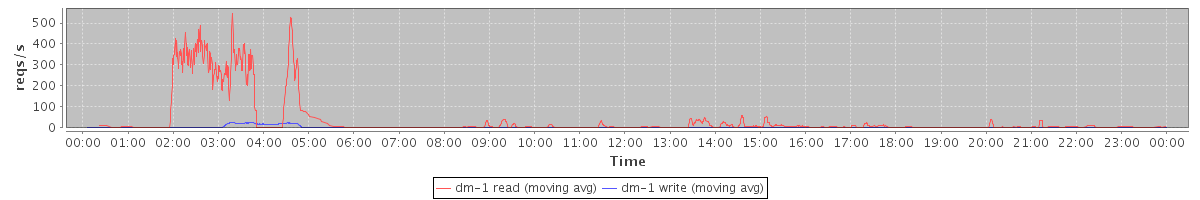 avg(dm-1 read) = 1640.45 avg(dm-1 write) = 400.04