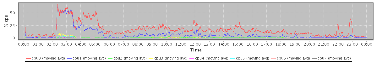avg(cpu0) = 0.07 avg(cpu1) = 0.16 avg(cpu2) = 0.03 avg(cpu3) = 0.05 avg(cpu4) = 0.03 avg(cpu5) = 0.04 avg(cpu6) = 0.03 avg(cpu7) = 0.01